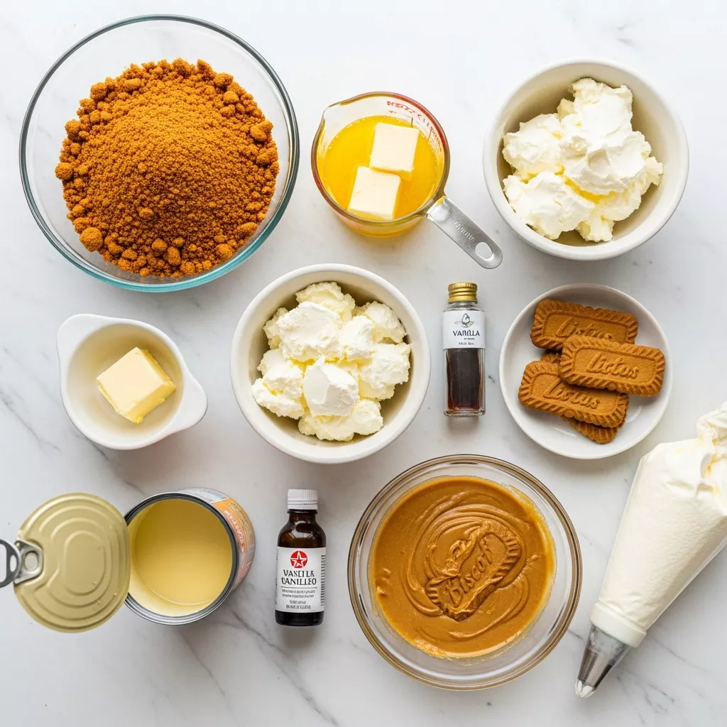 - 1 1/2 cups Biscoff cookie crumbs (about 24 cookies)