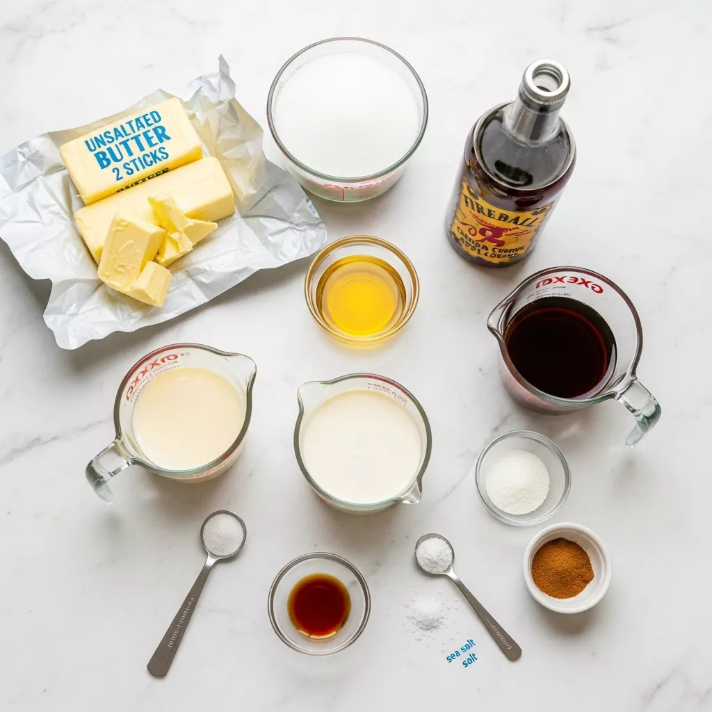 Remove the saucepan from the heat and carefully stir in the heavy cream, Fireball Cinnamon Apple cider, vanilla extract, and sea salt. Be careful as the mixture will bubble vigorously. Stir gently to avoid splattering.