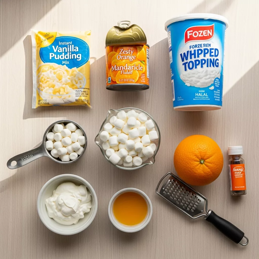 Transport yourself back to childhood with this bright, airy, and utterly nostalgic dessert salad that tastes just like your favorite frozen orange creamsicle. This no-bake delight is a symphony of creamy, dreamy whipped topping, zesty orange pudding, juicy mandarin oranges, and fluffy halal marshmallows, creating a light yet satisfying treat perfect for any gathering, from backyard BBQs to potlucks.