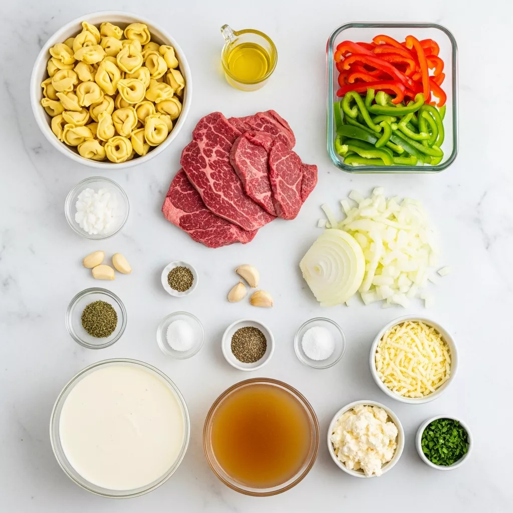 You can prep several components of this Philly cheesesteak tortellini in advance to save time on busy weeknights. Slice the onions and bell peppers ahead of time and store them in an airtight container in the refrigerator. The beef can also be pre-cooked and stored separately, ready to be added to the sauce.