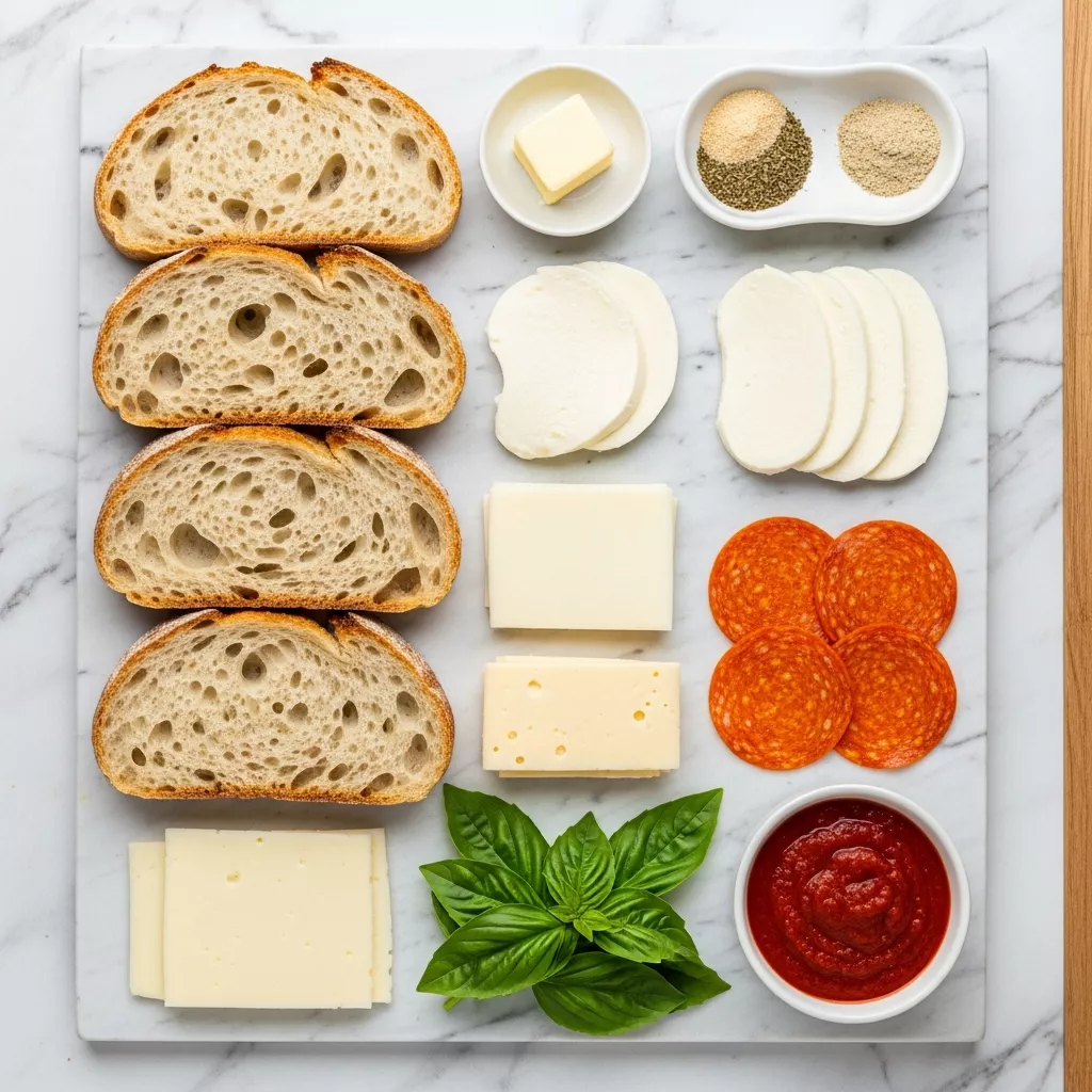 Pizza grilled cheese makes every moment feel satisfying. Begin by preparing your aromatic spread in a small mixing bowl. Combine the softened unsalted butter with the garlic powder and dried oregano. Stir the mixture vigorously until the herbs and spices are evenly distributed throughout the butter.