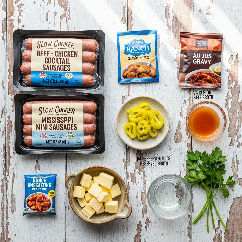 Unleash a burst of Southern-inspired flavor with these incredibly easy Slow Cooker Mississippi Mini Sausages! Tender beef or chicken cocktail sausages are slow-simmered in a rich, tangy, and savory sauce featuring classic Mississippi ingredients like zesty ranch seasoning, savory au jus mix, a touch of butter, and a kick from pepperoncini peppers. Perfect for game day gatherings, holiday parties, or simply a cozy family snack, these mini sausages are guaranteed to be a crowd-pleasing delight that practically cooks itself.